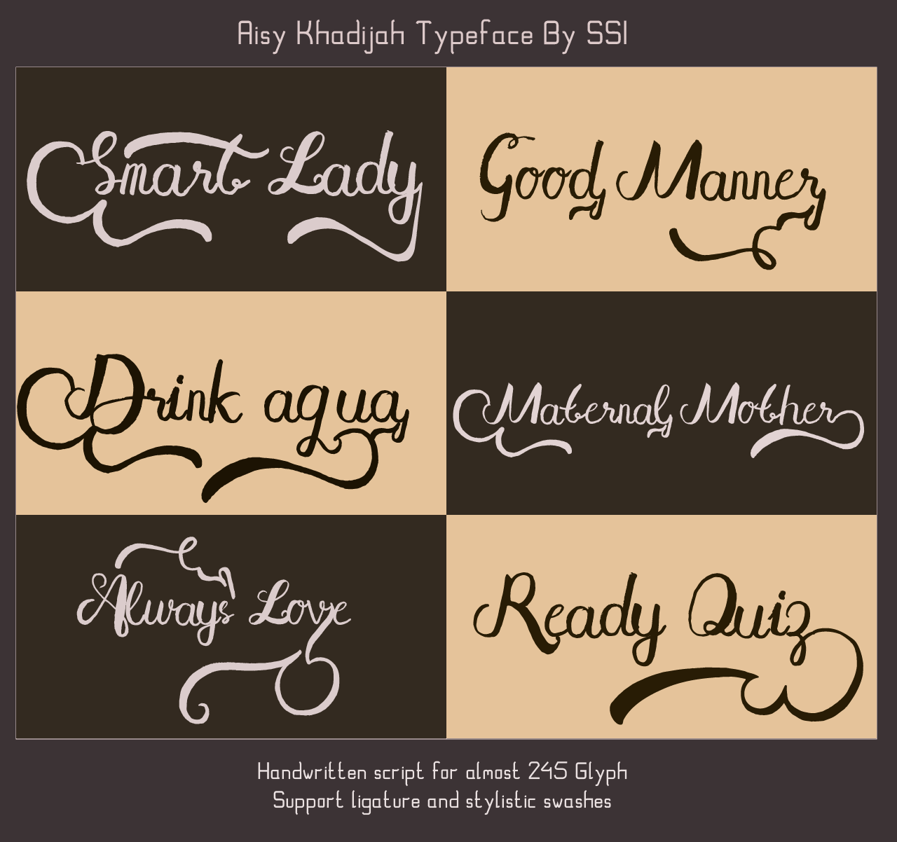 The Aisy Khadijah is a cursed handwritten font. It will add a striking, yet elegant look to your design.